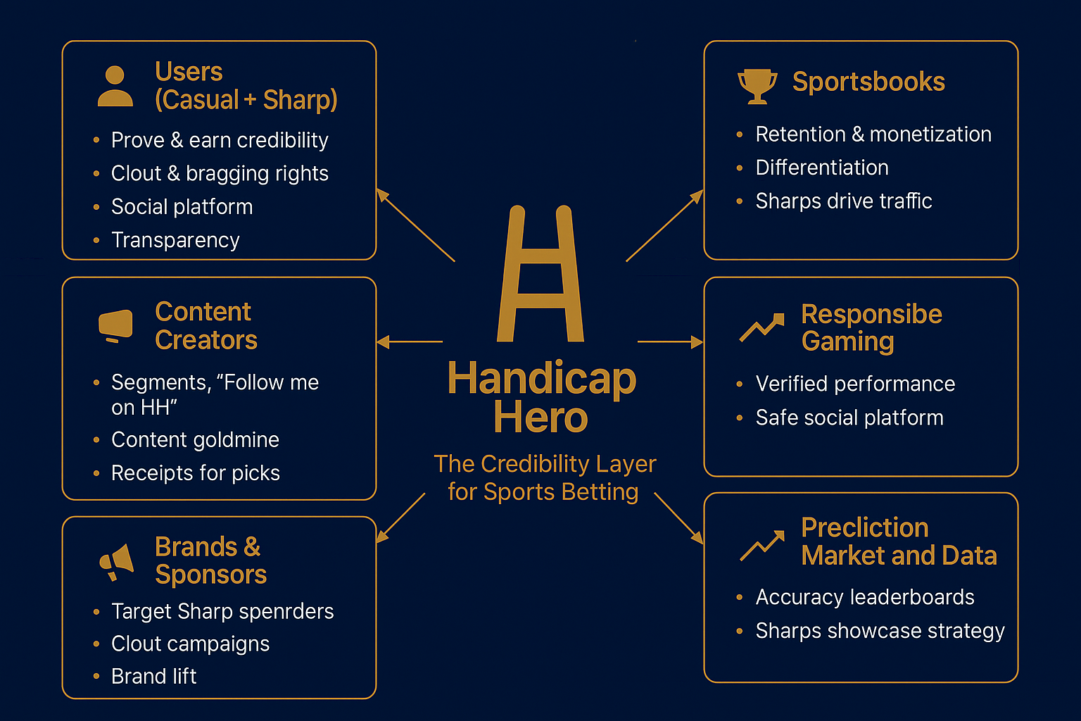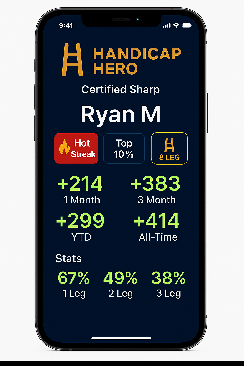 Handicap Hero is more than a leaderboard, it’s a free-to-play, patent-pending platform that turns every bettor into a verified profile.