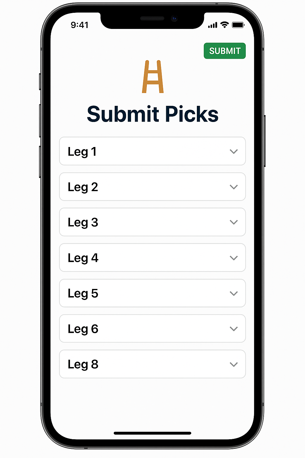 Users submit weekly parlay picks, ranked by confidence, from their “can’t miss” lock of the week down to their 8th most confident selection. Each pick is tracked against the spread or O/U, and performance is tied to a public betting resume. Leaderboards showcase sharps at every level, from 1-leg specialists to 8-leg risk-takers, and badges highlight hot streaks and long-term ROI.